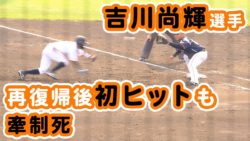 巨人 2軍でレフトを守る吉川尚輝選手。腰痛から再復帰後初ヒット